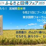 - 地域おこし協力隊 三神功さんの9月の活動三神さんの9月の活動は、この実りの季節にふさわしい、大きな成果を上げるものとなりました。 移住希望者との熱い交流!「ふるさと回帰フェア2025」 地域おこし協力隊として移住定住を推進する三神さんは、登米市の魅力を直接伝え […]